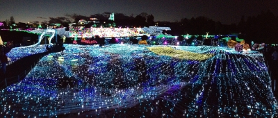 地面や丘の坂がすべてイルミネーションになっていて素敵でした。